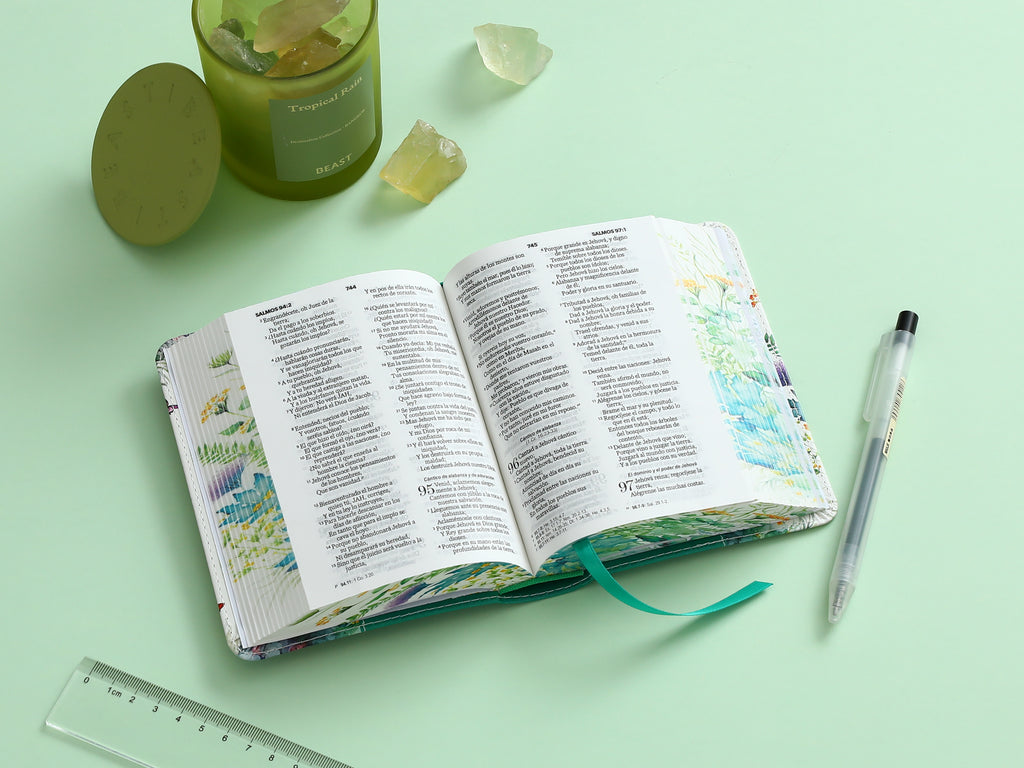 Biblia De Bolsillo RVR.1960 Imit.Piel Canto Verde Floral