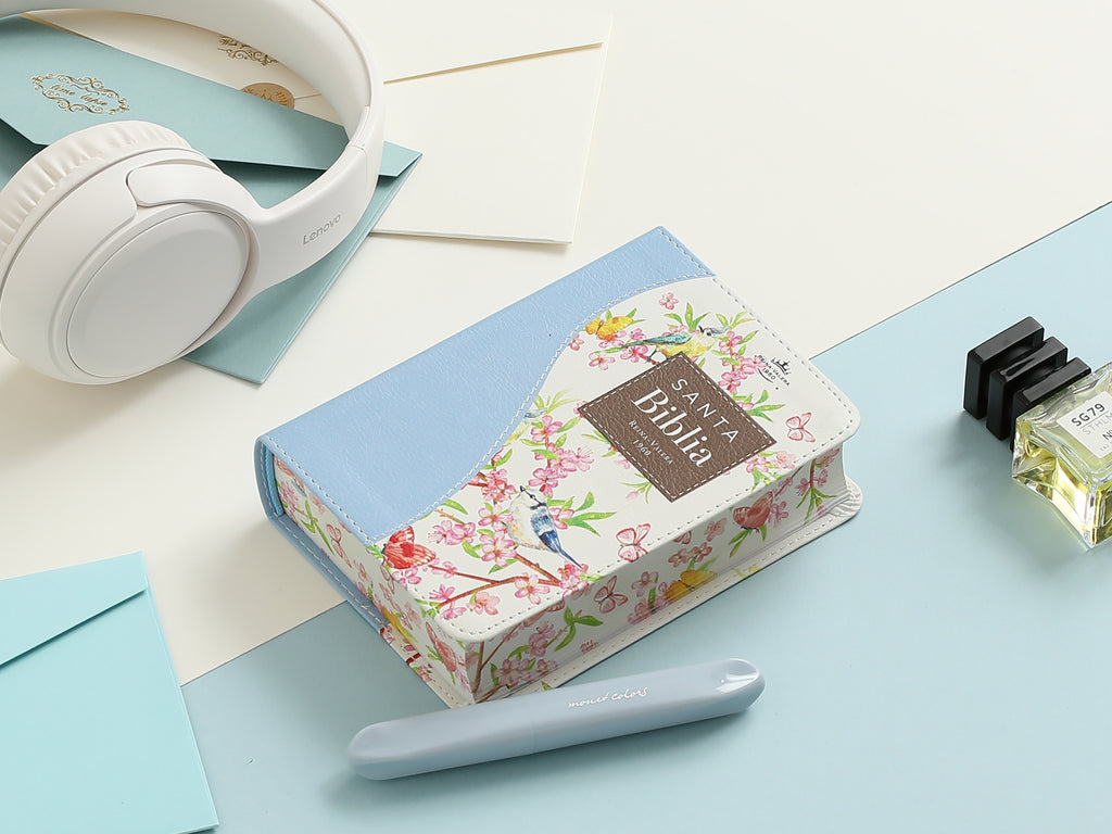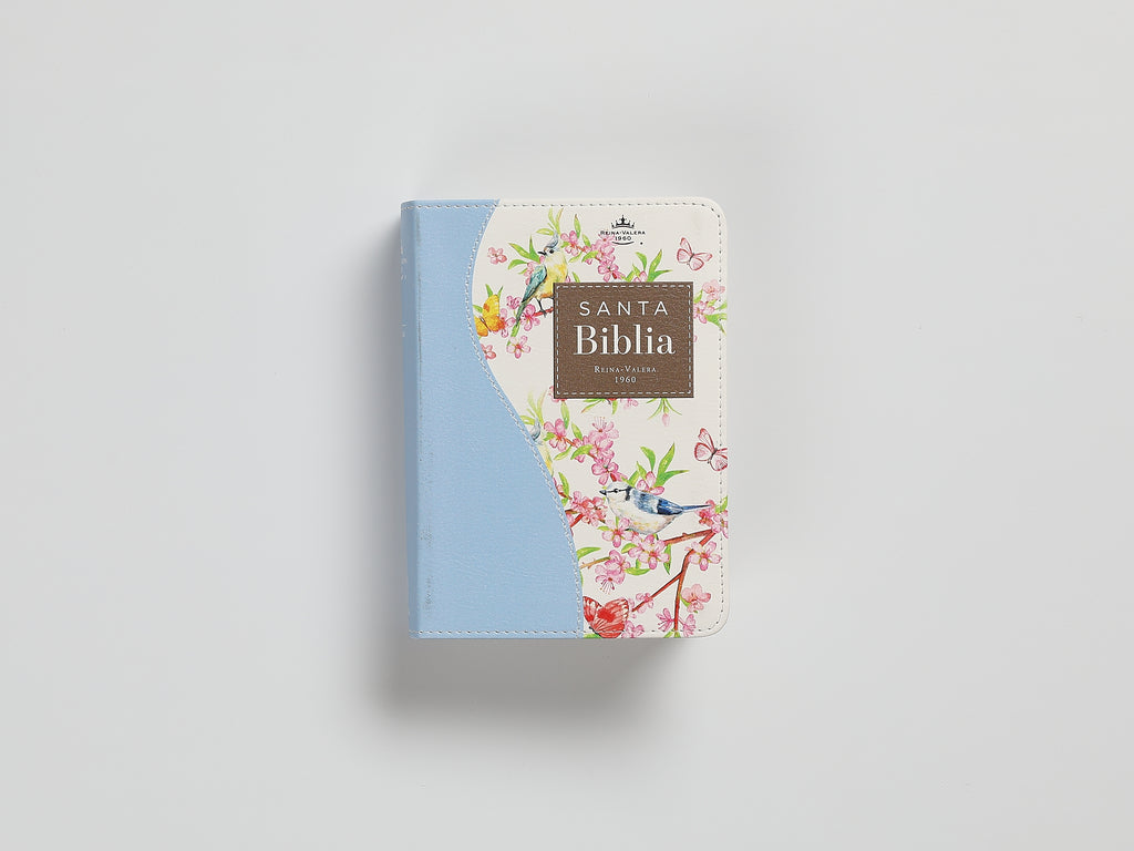 Biblia de Bolsillo Reina valera 1960 imit piel con canto floral celeste 8 puntos