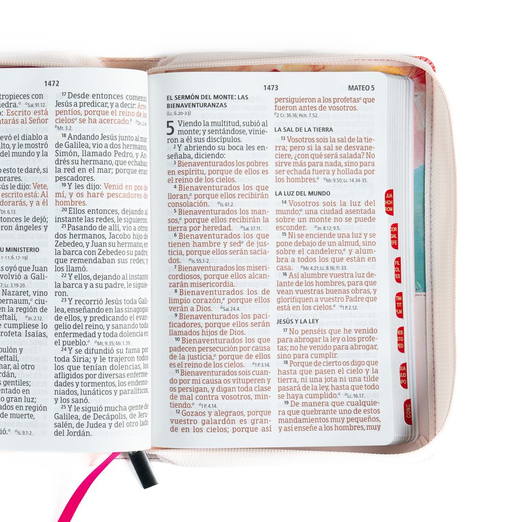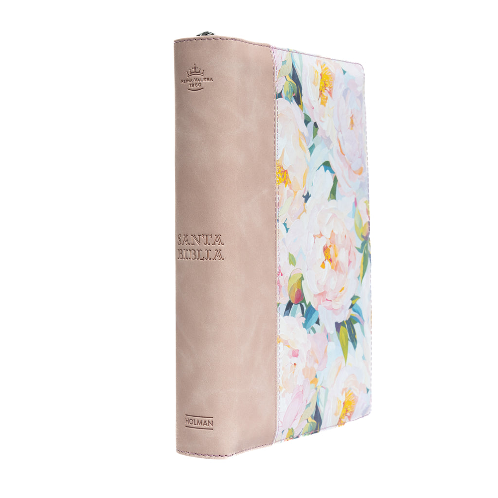 BIBLIA LETRA GIGANTE 14 PUNTOS MANUAL RV1960ROSA CUARZO/FLORES/C CIERRE INDICE